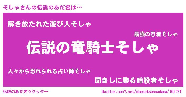 | 女子向けラノベタイトル風あだ名 | 『そしゃなんてお断りですっ。』 |