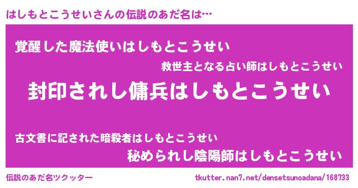 | 意味不明あだ名 | 『自称はしもとこうせい』 |