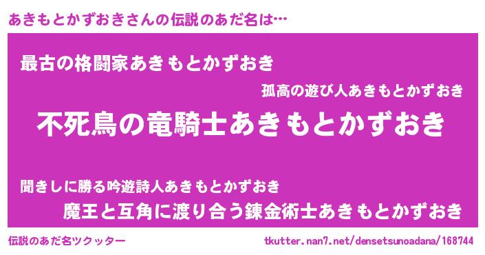 | 意味不明あだ名 | 『住所不定無職あきもとかずおき(2歳)』 |