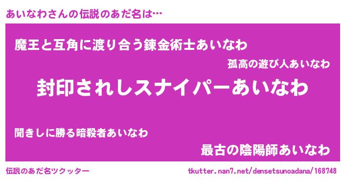 | ヘコむあだ名 | 『あいもー』『なまこ酢』『あいっぺ』 |