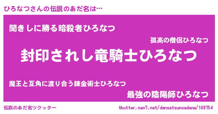 | ヘコむあだ名 | 『ひろにー』『ひろなつ(爆)』 |