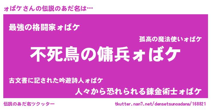 | 男性向けラノベタイトル風あだ名 | 『ォばケに滅ぼされるだけの簡単なお仕事です』 |