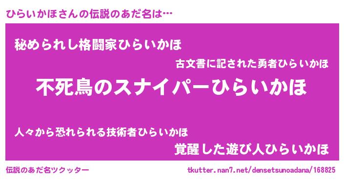 | ヒーロー風カッコイイあだ名 | 『スーパーヒライカホ』『仮面ヒラダー』 |