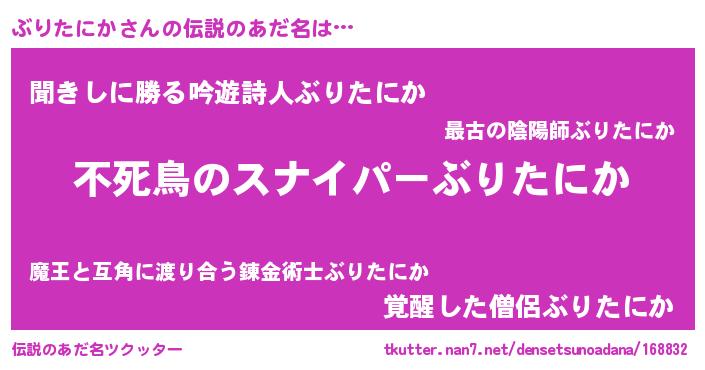 | 胡散臭い通販商品みたいなあだ名 | 『モテモテ間違いなし霊験あらたかなお札…その名も「ぶりたにか」』 |