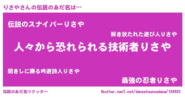 | ヒーロー風カッコイイあだ名 | 『友情の使者りさや』『スーパーリサヤ』 |