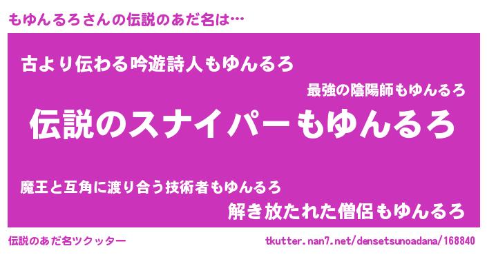 | ヘコむあだ名 | 『もゆもー』『もゆんるろ(小並感)』 |