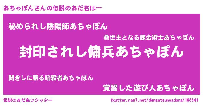 | 胡散臭い通販商品みたいなあだ名 | 『億万長者になれる水晶球…その名も「あちゃぽん」』 |