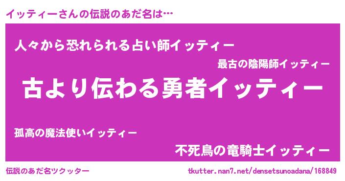 | 意味不明あだ名 | 『住所不定無職イッティー(91歳)』 |
