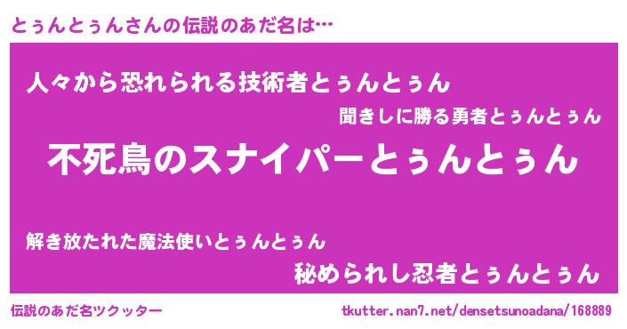 | 胡散臭い通販商品みたいなあだ名 | 『モテモテ間違いなし霊験あらたかなお札…その名も「とぅんとぅん」』 |