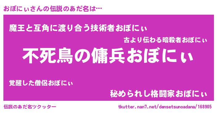 | 意味不明あだ名 | 『ペロリンおぼにぃ』『自称おぼにぃ』 |