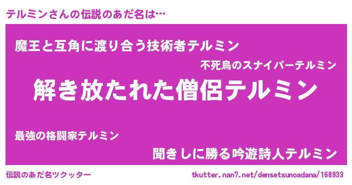 | ヒーロー風カッコイイあだ名 | 『幻影騎士テル』『友情の使者テルミン』 |
