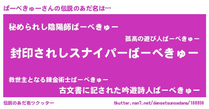| ファンタジー風あだ名 | 『バーフェル』『ユリバーヴァット』 |