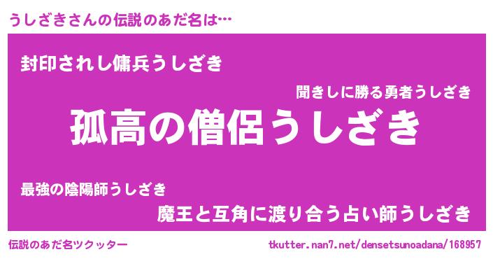 | 男性向けラノベタイトル風あだ名 | 『ダンジョンにうしざきを求めるのは間違っているだろうか』 |