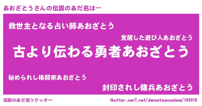 | ヒーロー風カッコイイあだ名 | 『ネオアオザトウ』『仮面アオダー』 |