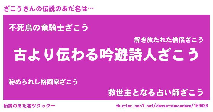 | 意味不明あだ名 | 『永久保存ざこう』『自称ざこう』 |