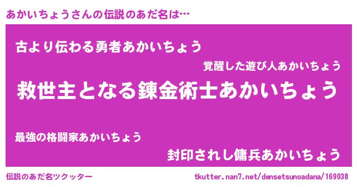 | 男性向けラノベタイトル風あだ名 | 『ノーゲーム・ノーアカイチョウ』 |