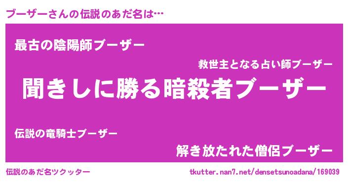 | ファンタジー風あだ名 | 『ブーディッシュ』『ファントムブース』 |