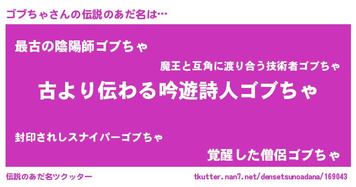 | 意味不明あだ名 | 『住所不定無職ゴブちゃ(2歳)』 |