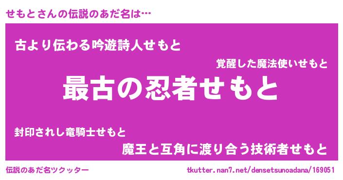 | ファンタジー風あだ名 | 『エターナルセモトー』『セモディッシュ』 |