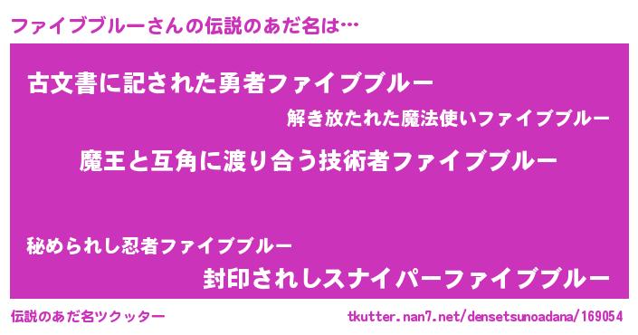 | 男性向けラノベタイトル風あだ名 | 『転生したらファイブブルーだった件』 |