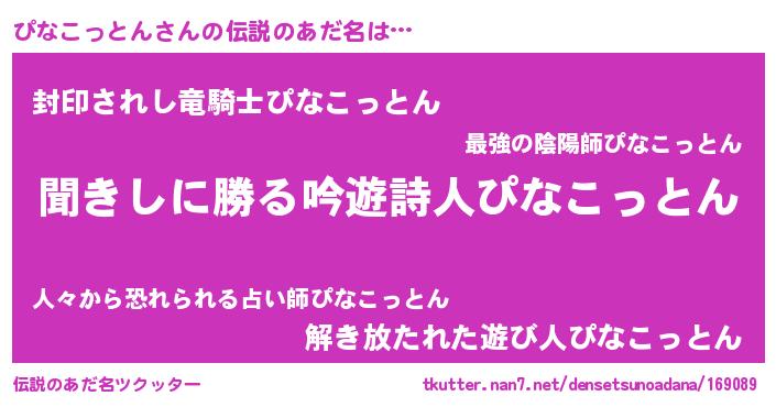 | ヘコむあだ名 | 『ぴなこっとん(小並感)』『ぴなにー』 |