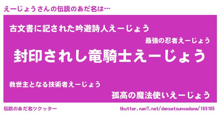 | ヘコむあだ名 | 『えーにー』『えーじょう(笑)』 |