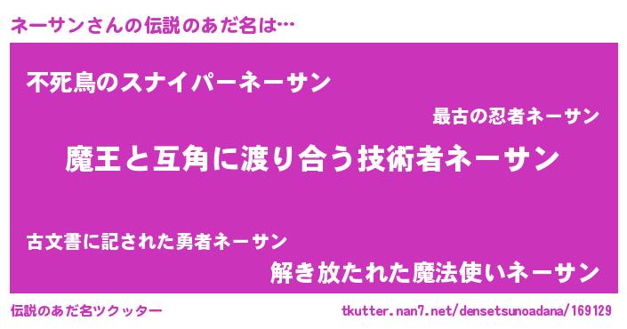 | ヒーロー風カッコイイあだ名 | 『仮面ネーダー』『愛の使者ネーサン』 |