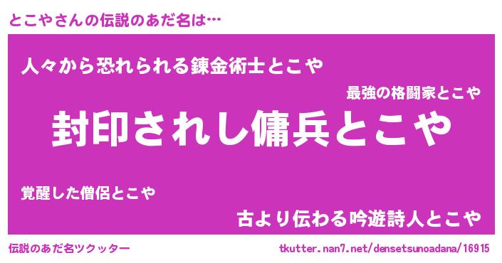 | ヒーロー風カッコイイあだ名 | 『スーパートコヤ』『正義の使者とこや』 |