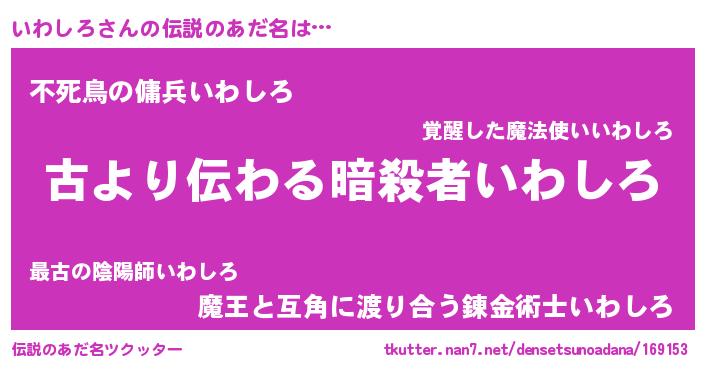 | 胡散臭い通販商品みたいなあだ名 | 『来世でも幸せになれる健康食品…その名も「いわしろ」』 |