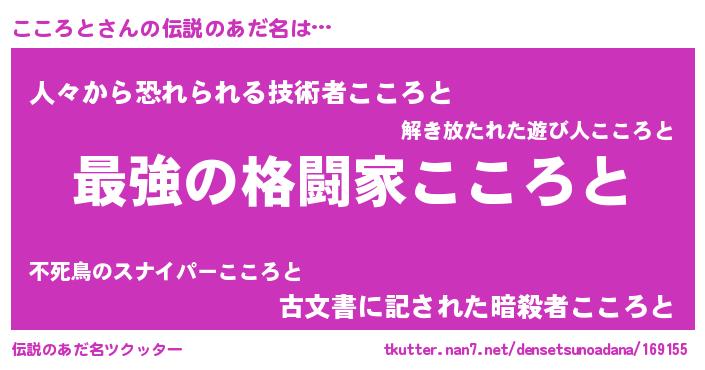 | 男性向けラノベタイトル風あだ名 | 『この素晴らしい世界にこころとを!』 |