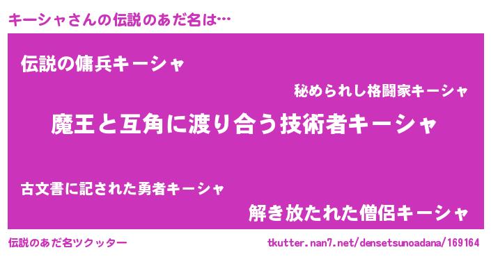 | 女子向けラノベタイトル風あだ名 | 『キーシャ恋絵巻』 |