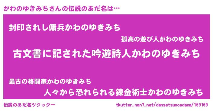 | ヒーロー風カッコイイあだ名 | 『ネオカワノユキミチ』『仮面カワダー』 |