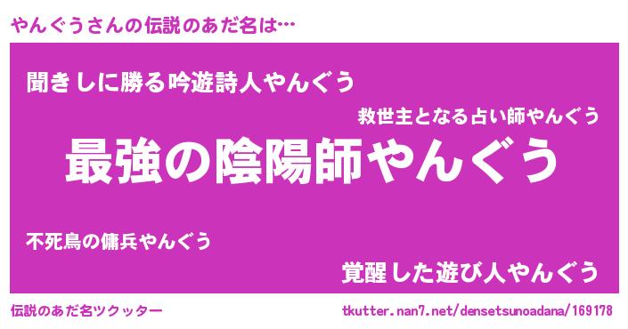 | 意味不明あだ名 | 『やんぐうフォーエバー』『自称やんぐう』 |