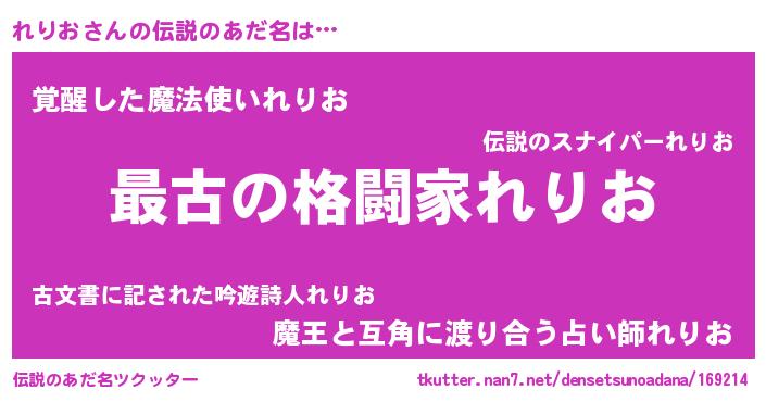 | 肩書あだ名 | 『れりお閣下』『れりお総理大臣』 |