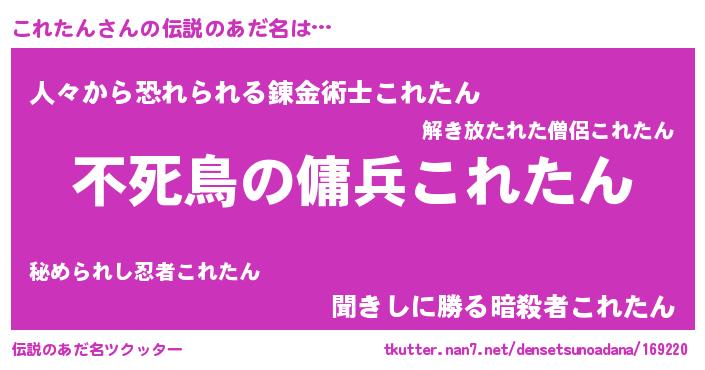 | 女子向けラノベタイトル風あだ名 | 『これたん姫と円卓の騎士』 |