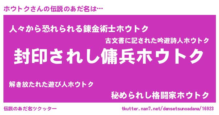 | ファンタジー風あだ名 | 『ホウフェル』『ゼホウトゥ』 |