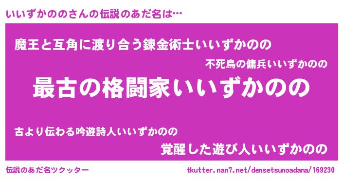 | 意味不明あだ名 | 『いいずかののフォーエバー』 |