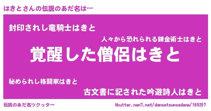 | 意味不明あだ名 | 『とにかく怪しいはきと』 |