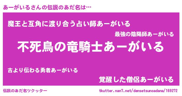 | 意味不明あだ名 | 『住所不定無職あーがいる(6歳)』 |
