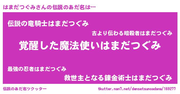 男性向けラノベタイトル風あだ名 | 『はまだつぐみの嫁は女の子じゃないと思った?』 |