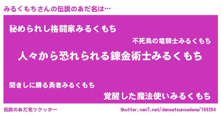 | ヒーロー風カッコイイあだ名 | 『正義の使者みるくもち』『炎刃騎士ミル』 |