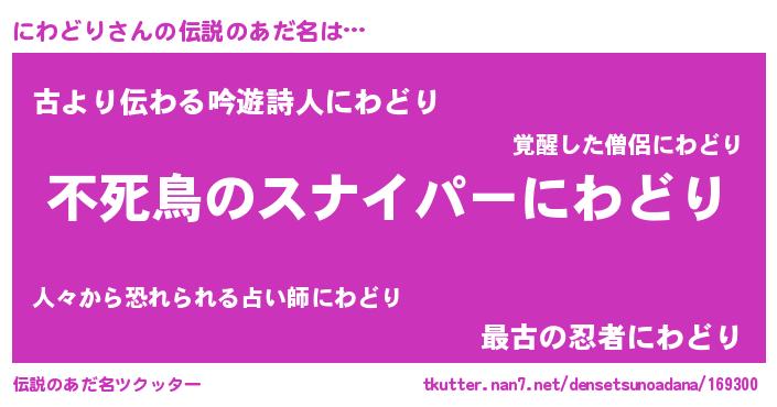 | 意味不明あだ名 | 『ペロリンにわどり』『自称にわどり』 |
