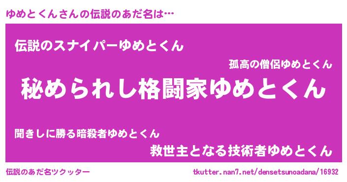 | ファンタジー風あだ名 | 『エターナルユメトクンー』『ユメフェル』 |