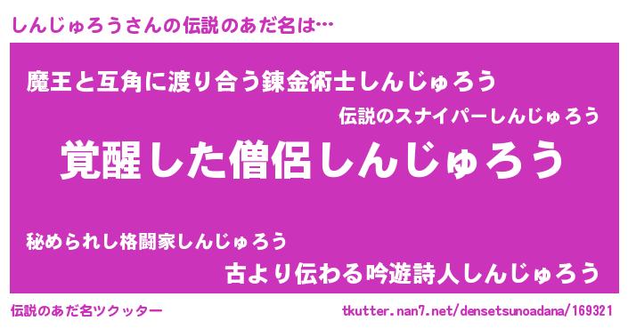 | 意味不明あだ名 | 『とにかく怪しいしんじゅろう』 |