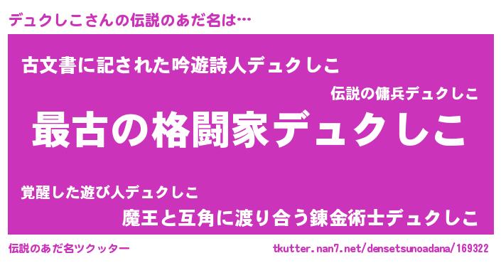| ヒーロー風カッコイイあだ名 | 『ウルトラデュクしこマン』 |