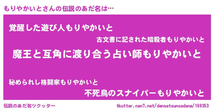 | ヒーロー風カッコイイあだ名 | 『慈愛の使者もりやかいと』 |