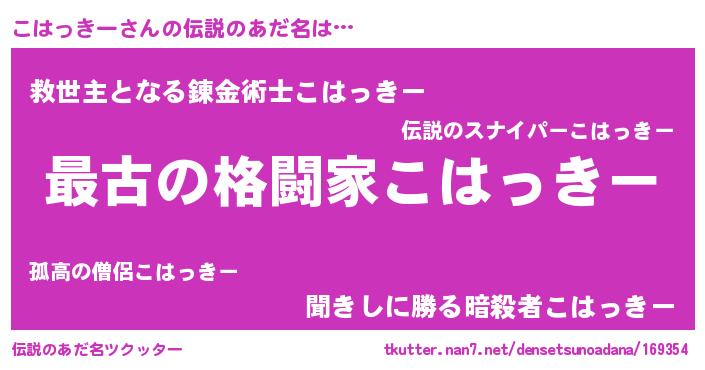 | 男性向けラノベタイトル風あだ名 | 『転生したらこはっきーだった件』 |