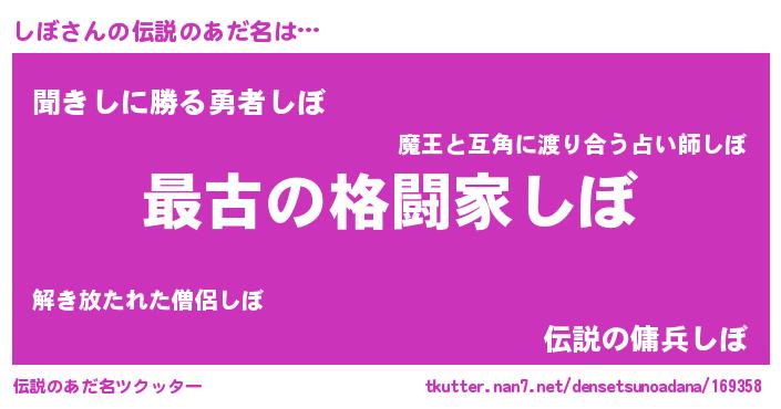| ヒーロー風カッコイイあだ名 | 『仮面シボダー』『ウルトラしぼマン』 |