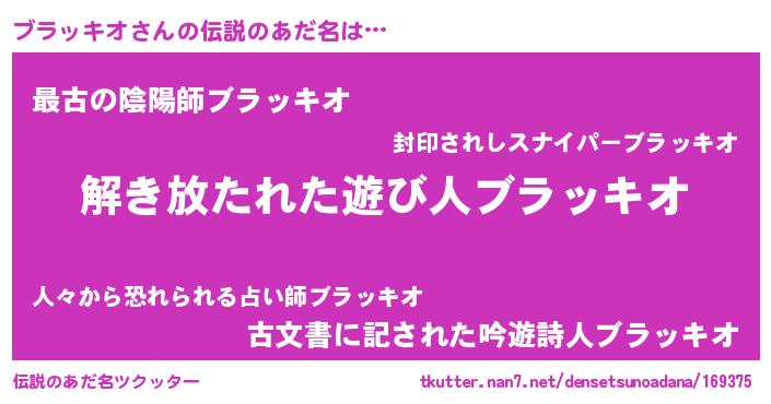 | 意味不明あだ名 | 『とにかく怪しいブラッキオ』 |