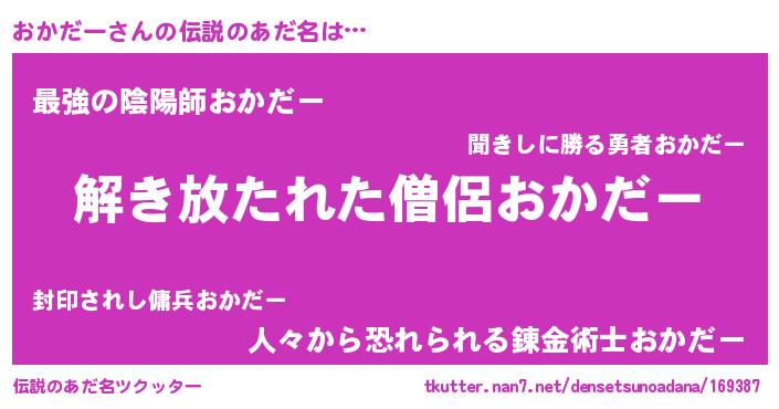 | 意味不明あだ名 | 『住所不定無職おかだー(65歳)』 |